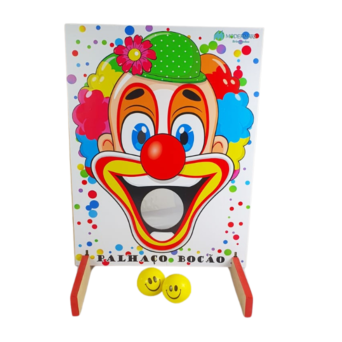 O Boca do Palhaço é um brinquedo clássico e divertido, ideal para festas juninas, eventos escolares, confraternizações e brincadeiras em família. O objetivo do jogo é simples: tentar acertar as bolas na boca do palhaço, somando pontos e garantindo momentos de alegria e desafio para crianças e adultos.